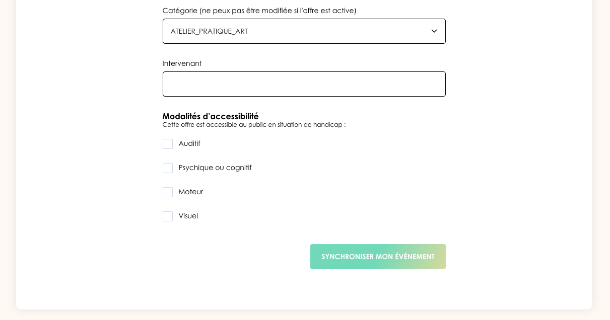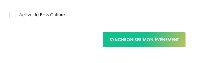 Cliquez ensuite sur le bouton "Synchroniser mon événement" afin d'envoyer les informations à Pass Culture et ainsi de le créer.